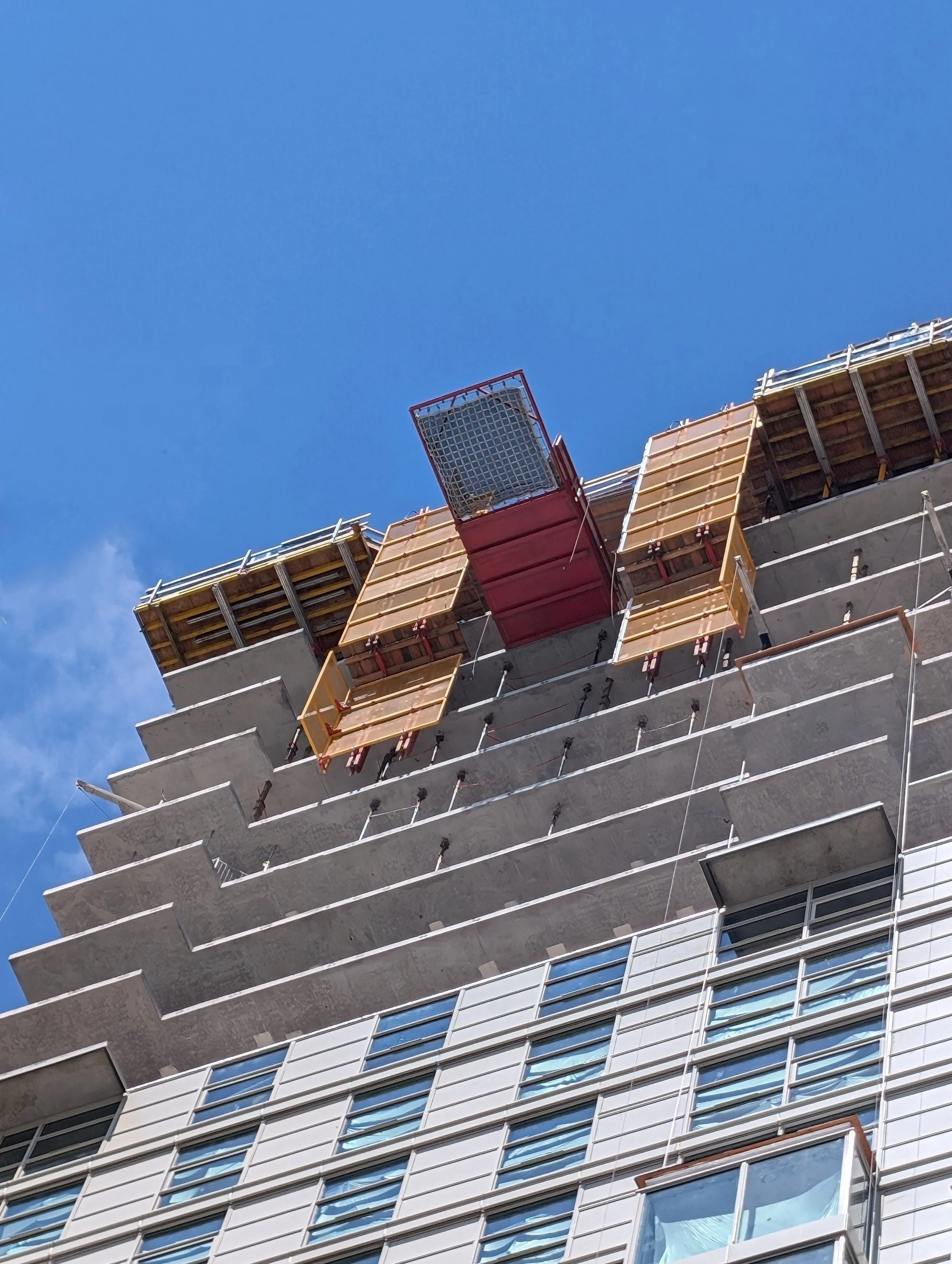 Another aspect that delivers savings is in the capacity. If you are jumping one stillage or barella of gear at a time, that’s time spent rigging it up and flying it one at a time. If our capacity enables you to jump two or four at a time, that savings starts running into minutes per stillage rack. If we presumed 40 units (varies by floor size) and we save 3 minutes by cutting out one cycle, that’s $500 of crane time saved per floor which is probably way low as an estimate. Over the course of 40 floors, that’s $20,000 in savings on crane time. Are we up to nearly $29,000 in crane savings with these two advantages? The benefits of changing the crane operation times is dramatic in your budget. This doesn’t even consider impacts on not needing as much overtime. These are just the straight time impacts. On a 40 story project, living with items that slow down your crane operations gets very expensive very quickly.